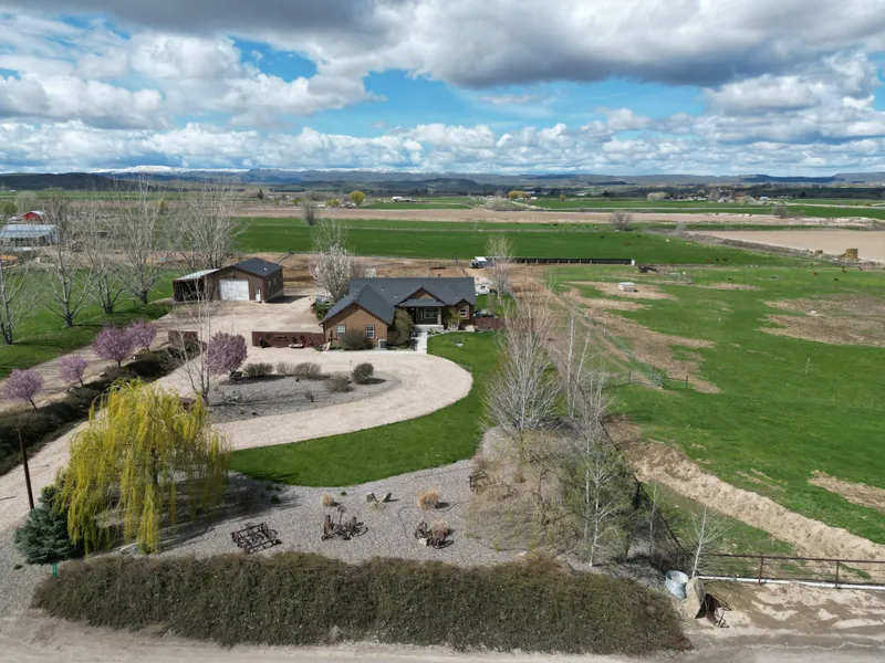 Custom home w/panoramic views of the Owyhee Mountains. Can purchase adjoining west 14.7 acres for $1,400,000 total that is currently in alfalfa. Self sufficiency living dream property. Spacious living room w/rock wall fireplace. Picture windows to enjoy the views. Beautiful country dream kitchen w/large pantry, all stainless appliances and oversized eating area. Living room and master have access to 9x30 covered deck. Private master suite. Master bath has soaker tub and oversized walk in tile shower. Spacious family room w/wood stove downstairs. Family room has walk out to back yard. Rock walk way goes to the fire pit and above ground pool w/built in deck. Deck has storage for 4 wheelers/mowers. Silo converted to entertainment center complete with bar/bar stools. Custom chicken coop next to the large garden area. Shop has a 10x12 door, 220 power, wood stove, office and lots of shelving. Plumbed for a bathroom. 15x45 covered equipment bay/RV parking on side of the shop. Irrigated pasture. Horse corrals. Pipe fencing. 150x300 arena. Raised garden beds and trellised grapes.Succor rod fencing for Cows, pigs and goats have field fencing. Heated automatic waterer's. Covered stalls for sheep/goats/pigs or cattle. Irrigation water rights are Old Gem, which is from the Snake River and some of the best water rights around. This truly has something for everyone. Only 5 minutes to Homedale and only 3 stops to the Boise Airport.
