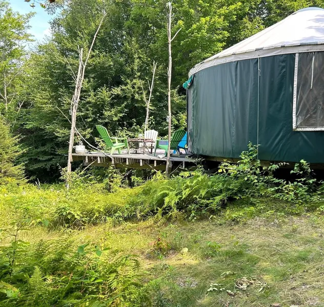 Tucked away on 47 private, western-facing acres, this off-grid escape offers a rare opportunity to fully unplug and reconnect with nature. Perched amidst rolling terrain and surrounded by the mountains of western Maine, this retreat captures sweeping sunsets and tranquil mountain views in every season. Designed for simplicity and solitude, the yurt provides a cozy, open-concept haven—perfect for a weekend getaway, creative retreat, or basecamp for outdoor exploration. The surrounding land invites hiking, stargazing, and complete immersion in the natural world. If you're seeking quiet seclusion, wide-open skies, and the freedom of living off the grid, this unique offering is ready to welcome you