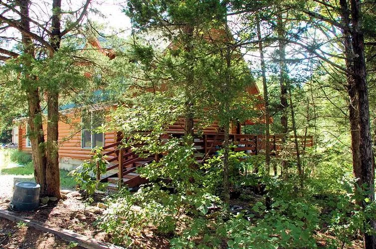 38 acres with gorgeous 2400 sq.ft. log home in a wonderful wooded setting - 4 bedrooms - Covered front porch - Seasonal springs - Blacktop frontage. Just 4 miles from Rock Bridge! Home very near completion - interior can be finished to suit your needs and taste! Can heat with wood or ventless propane - some tile features inside - 1 bathroom main level and plumbed for second bathroom upstairs - travel trailer stays. Can be purchased with less acreage.