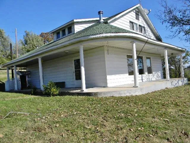This older remodeled 3 bedroom 2 1/2 bath home, sets on a hill overlooking a big valley and Lick Creek with St Hwy and County road frontage near Howard's Ridge. Master bed and bath downstairs with 2 bedrooms and a full bathroom upstairs. A wrap-around porch on 3 sides, large yard, front and back, with 4 outbuildings for PLENTY of storage. Central gas heat & A/C, with a wood backup furnace, an exceptional concrete storm shelter-cellar, with access from within the house. 10 minutes to Lake Northfork Lake, Gainesville, and 25 minutes to Mt. Home. This property has options as a started home, rental property, or investment property. Call David at 417-257-4446, or 417-679-4997 to view this property.