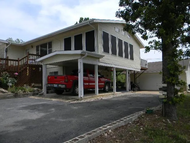 ****THE PRICE IS RIGHT****An amazing opportunity to own this 3 bedroom, 2 bathroom home setting on 4 lots overlooking Bull Shoals Lake, in Country Club Hills subdivision near the golf course. This home is move-in ready, with oak kitchen cabinets, vaulted ceiling family room that views the lake, 2 bedrooms upstairs, and 1 bedroom downstairs, along with a small kitchenette, walk out basement. This home is heated with electric FA, gas fireplace both up and downstairs. There is hardwood floors, carpet, tile, and linoleum in the home, along with a gas cook stove, electric w.h., high speed internet , jacuzzi tub, and a large utility room. New roofs were put on both the house and the approx. 24'x24' detached 2 car garage in 2011. There is a 30'x40'x10' shop building, concrete floor, that is a man's dream work or storage area. Between the house and shop, is a garden spot, that is fenced-in to ke...