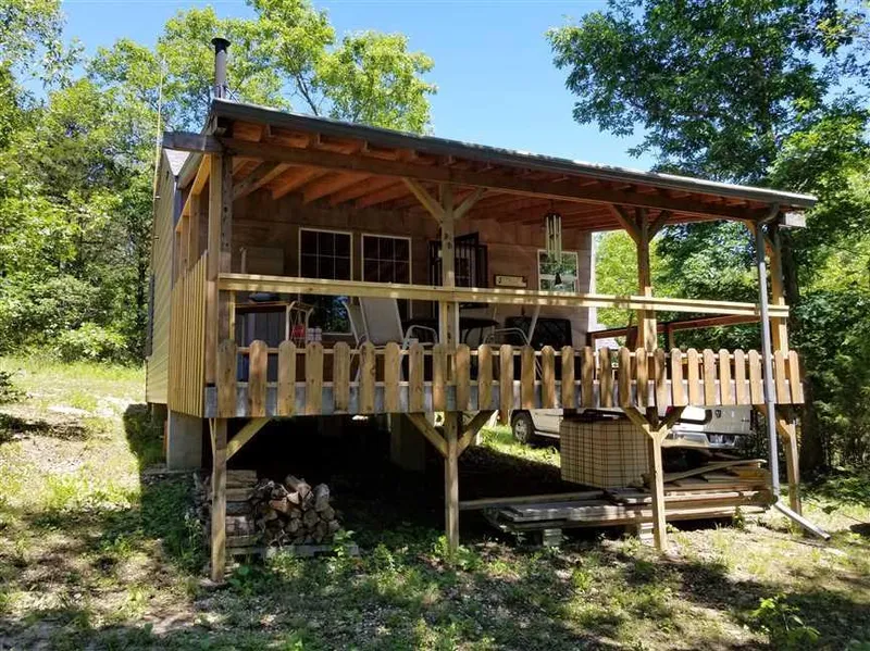 Very secluded, brand new cabin on 40 acres of timber outside of Thornfield, Missouri. The cabin is set-up as "off-grid" and has solar power and a generator with battery backup. There is electric on the property if needed, a new registered well, and septic/lagoon. Cabin comes mostly furnished and features tongue-and-groove knotty pine, 1-bedroom, 1-bathroom with 12'x22' covered deck. Beautiful place to have coffee in the morning and watch the wildlife. The property is mostly timber, and has approximately 8 acres bottomland pasture/hayfields on the South side. There are two creeks that run through the property providing beautiful scenery and water for the deer and turkey. This property borders the Mark Twain National Forest. Must see to appreciate this private place!