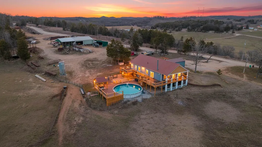 FARM & INCOME PROPERTY ON 118+/- ACRES Just minutes from Gainesville, Missouri, this exceptional 118+/- acre property offers the rare combination of a spacious home, productive farmland, and an established income-producing business (available to purchase separately). The 3,720 sq ft modular home sits on a full finished basement and features 5 bedrooms and 3 bathrooms, providing ample space for family living or hosting guests. Inside, you'll find a mix of hardwood, tile, laminate, and carpet flooring, custom cabinetry, large windows overlooking the land, and a cozy wood-burning fireplace. The home is designed for efficiency and comfort with a wood-burning furnace that heats both the home and water, along with a radiant floor heating system. A durable metal roof adds peace of mind. Outdoor living is a standout feature, with an above-ground pool and expansive wraparound deck that connects d...