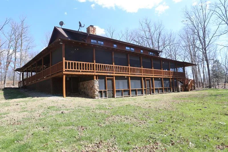 This log home boasts 7 bedrooms, 6 bathrooms, great room, country kitchen, dining room, and guest rooms. The home has a wrap around porch that is screened on the back portion, covered porch, and sun room. The home offers pine wood flooring, a two sided native stone floor to ceiling fireplace, open beam ceiling, wood beams, pine ceilings, oak cabinets, butlers pantry, study/den, and 3 living areas. Additional features include a 40x60 barn, RV storage garage and workshop, and a 4 car detached garage.