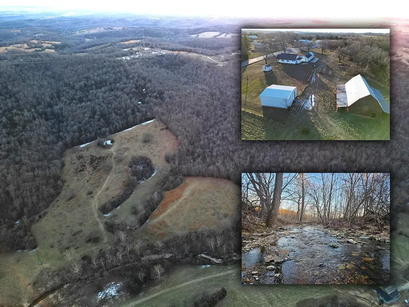 This 222 acre farm has a lot to offer the homesteaders, hobby farmers, hunters, and outdoors enthusiasts. The infrastructure includes a 3 bed, 1 bath farm house, a steel shop with concrete floors, a detached 3 car garage with an office, storage building/ she shed, and a postcard worthy solid oak red barn.