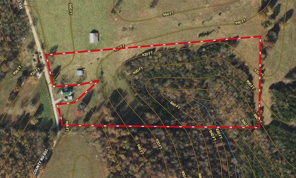 This rural property is located 5 minutes to the Mark Twain National Forest and 15 minutes to Bull Shoals Lake. The open ground is gently rolling and folds into a timbered draw.