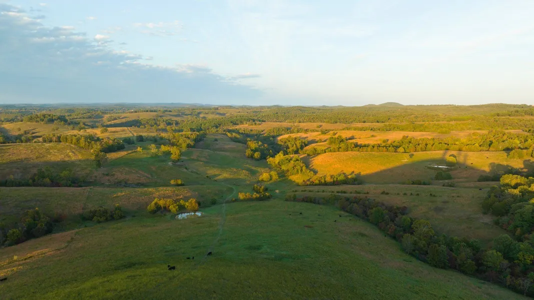 The Pocket Hollow Ranch is a large, contiguous acreage situated in the center of the beautiful Ozarks that provides a great rotational grazing system, ample water resources, good infrastructure, and panoramic views of the beautiful land. The ranch is a testament to a large-scale livestock operation in Missouri near Bull Shoals Lake. The property is ready for your stock trailer to be unloaded, featuring a rotational grazing system of ten paddocks with quality fencing, and numerous water sources that include 14 ponds, natural springs, beautiful live water creeks, two wells, and numerous automatic waterers, making cattle management simple. The ranch is well-equipped for daily operations, with practical amenities such as pipe cattle corrals, barns, hay and equipment storage, and a versatile shop with concrete floors. Cattle movement is facilitated by seven gated entrances with an internal ro...