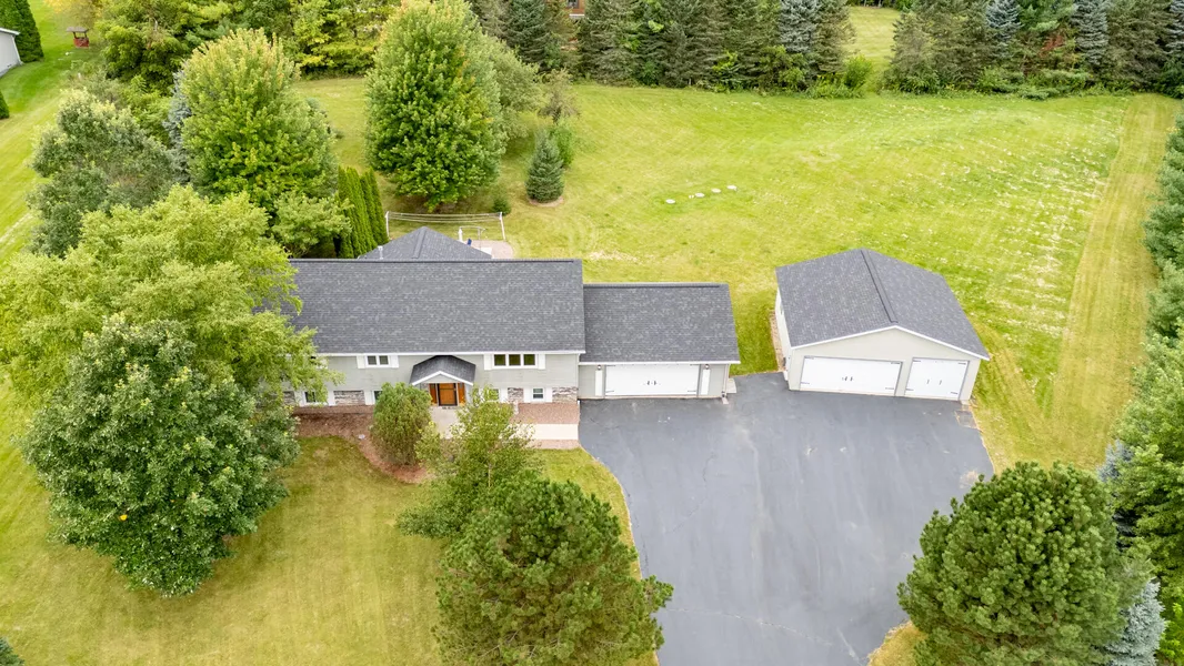 Country home with sprawling tree-lined back yard nestled in a private Cul-De-Sac. This property boasts an extra detached 3 car garage with extra tall 3rd bay door for larger vehicles. Tree lined property with many fruit trees beautifully landscaped. Open concept Bilevel with vaulted ceilings, large kitchen/dining area that opens to a patio and backyard makes entertaining easy. Main floor laundry. Centrally located between many towns and easy access to highway. Call for a showing today, this won't last long. Professionally Painted.