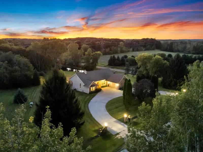 Welcome to this stunning 3-bedroom, split ranch set on a tranquil 2-acre lot with a private pond. This residence features a luxurious primary suite, spacious walk-in closets, and souring tall ceilings. The natural fireplace creates a warm and welcoming ambiance, while the expansive gourmet kitchen sets the stage for memorable gatherings. The screened-in porch provides a tranquil sanctuary for relaxation. With an exposed basement offering versatile potential, this home has it all. Experience the beauty and serenity of this countryside haven Enjoy the tranquility of country living while being just minutes away from amenities. Schedule a showing today!