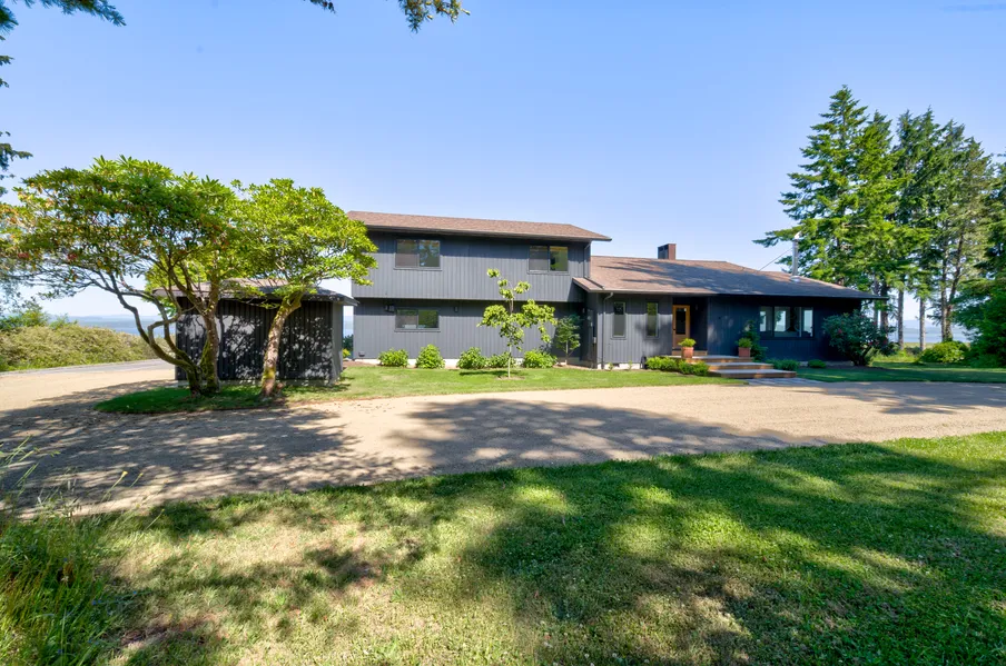 A glamorous home and storied historic property is located on the grounds of the former nationally famous Clarke Rhododendron Nursery. Drive down a quaint country lane by a unique collection of hybrid rhododendrons that are gently hiding in a forested setting. It’s a breathtaking view that is loaded with the charm of an old world horticultural heritage! You’ll gasp when you see the circular drive and the classic large restored NW Contemporary architecture in this large home nestled into a hillside, built exceptionally close to Willapa Bay. Live outside or in on three levels, each presented with so much charm and classic restraint so as not to overshadow the very unique location, views and enviable privacy. Outdoor kitchen with awning !