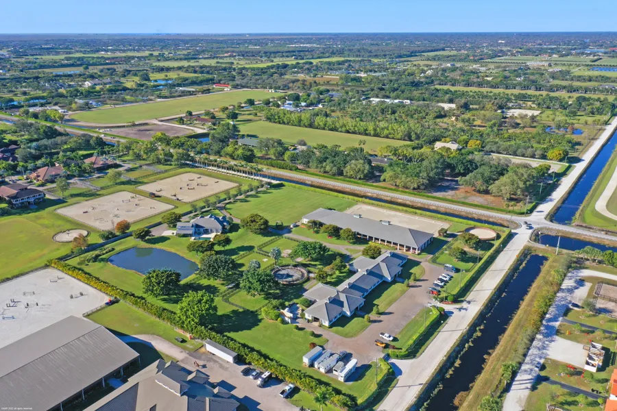 Income-producing & for all disciplines! Beautifully appointed home, private 28 stall barn, grass Grand Prix field, covered arena, outdoor ring, euro-walker & round pen on 8.85 acres. All perfectly situated on a beautifully manicured 8.85 acres & just minutes to the WEF, Global & IPC competition venues. The stable boasts 2 mirror image wings: 8 wash stalls, 2 tack rooms, 2 feed rooms, 2 laundry rooms, 2 kitchens, 2 bathrooms, & 2 storage rooms. The 4 bedroom residence with office has an open concept great room with center-island kitchen, professional gas range, quartz counters, stunning glass-enclosed wine cellar & beautiful wood floors throughout. The primary bedroom suite has a spa-like bath which opens out to a romantic outdoor garden shower.