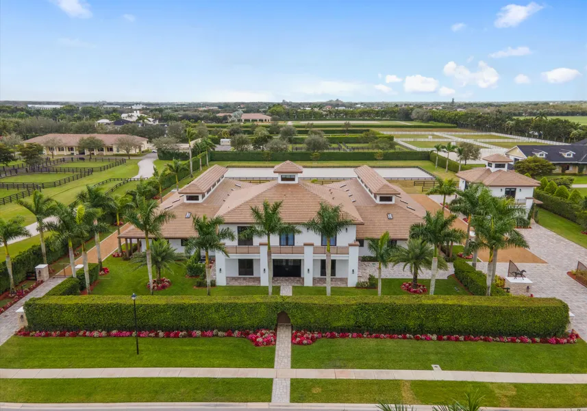 This custom built private farm spared no expense with it's thoughtful design and construction. Situated on 2.5 acres, this property offers 18 stables that are equally divided to reflect one another. Each side equipt with 2 grooming stalls, 2 wash stalls, 2 feed rooms with washer/dryer and 2 lounges with half baths. The outdoor arena is 200x70 with room to expand if needed and surrounding paddocks. The owners quarters feature 3 bedrooms and 3 baths, all en-suite with walk-in closets. There is a state-of-the art kitchen dressed with Thermador Pro collection appliances and parallel to the expansive covered patio. Enjoy outdoor living with a beautiful summer kitchen to include Alfresco BBQ all while overlooking the arena and paddocks. There is a 2 bedroom, 2 bath guest house that rests above a spacious 3 car garage/storage area. Fully independent with kitchen, living, laundry facility and balcony! With numerous upgrades to include extensive security system, interior/exterior pavers, handmade cabinetry throughout the entire property, Cypress ceilings with cupulas and city utilities including water, electricity, sewer and Fibre. Enter this fabulous property through a private Grand Prix Farms owners gate while enjoying all of the amenities the Equestrian Club has to offer.