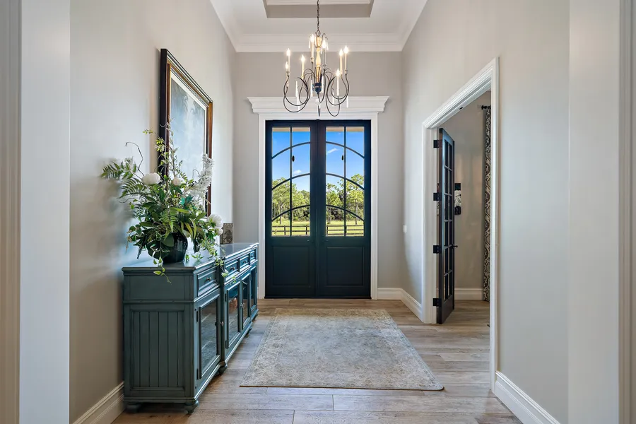 This Estate is sure to excite the Equestrian or Outdoor enthusiast. Perfectly situated on 8.2 acres of land, the home is located down a long tree lined paved road and sits adjacent to thousands of acres of wildlife preserves, offering you complete privacy. You will love the spectacular interior architectural elements throughout this recently constructed custom country estate that features 6 bedrooms and 5.2 bathrooms. From the moment you enter this estate you notice the remarkable custom features and extraordinary attention to detail. The first floor includes a formal foyer with exceptional ceiling detail, custom built office, volume ceilings in the living areas, a stone fireplace and imported Italian wood like porcelain floors throughout. The chef's gourmet chef's kitchen has custom cabinets, oversized Island, top of the line fixtures and appliances and spectacular attention to detail in the grooved ceiling. The elegant and spacious master suite has a custom tiled bathroom with dual vanities and a large walk in shower. The home also has a media room/playroom. Other features include impact windows throughout, built in speakers, water filtration system, salt water heated pool/spa, outdoor shower, pole barn (4 stalls can go up to 10+ stalls) and many other high end features too numerous to list. No showings until October 21, 2021. The seller will not look at any offers until November 21, 2021.