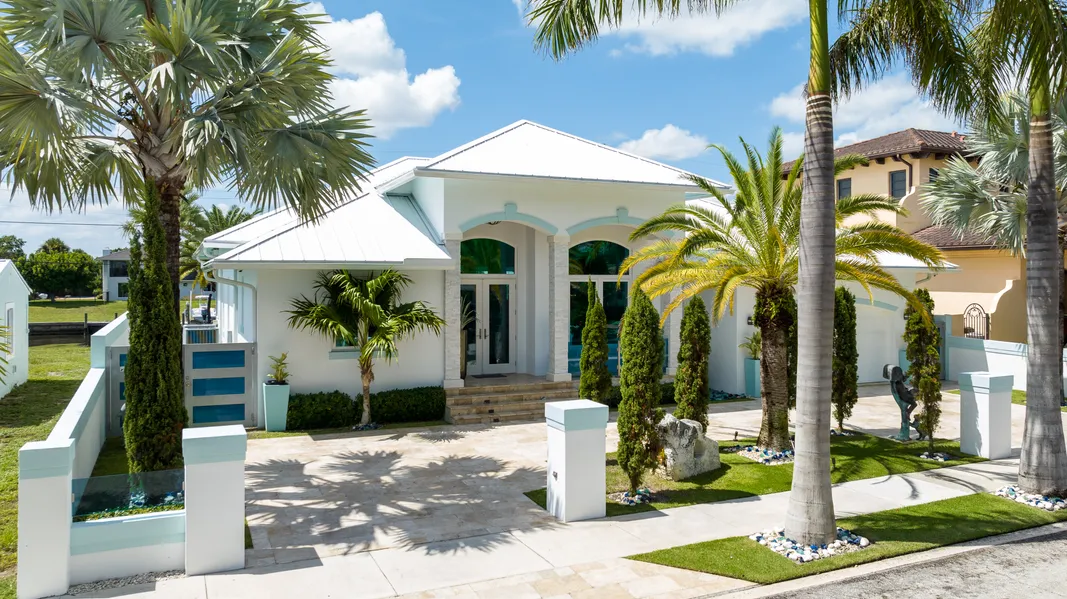 Stunning waterfront home is a boater's dream! Custom, newer (2014) high quality construction property offers exquisite details throughout. Grand master bedroom has water views and boasts his and hers master bathrooms and custom closets! 60 ft dock and up to 24,000lbs boat lift will accommodate your toys and offer easy ocean access. Enjoy the unique outdoor experience this home offers including a large covered loggia, inviting infinity pool, outdoor kitchen and plenty of sunny backyard space with water views. Other luxury features include gourmet kitchen with gas stove, Nanawall folding glass doors, high ceilings, and polished white glass floor tiles. Located in the sought after SoSo residential neighborhood, this home is also close to Palm Beach, downtown WPB, beaches, shopping and airport