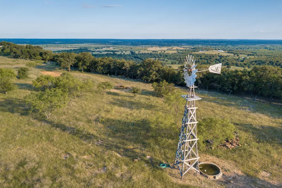 Improvements: Resting on the hilltop sits a nice 2 bedrooms, 1 bathroom home, with a viewing deck above the house showcasing the panoramic views multiple directions. You can see multiple counties from the bluff. Located just in front of the home are three pipe fenced horse runs. The property is perimeter fenced. There is a 90-year old wooden windmill transported from a historic ranch in the Texas panhandle sitting on top of the bluff in the pasture next to the house. In addition to the current home site, there are numerous building sites that offer spectacular vistas.