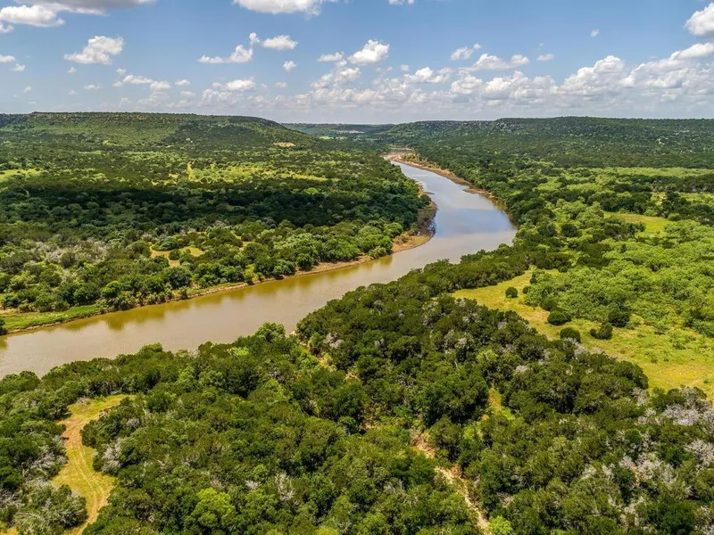The highlight of the water features is the spectacular 4300' of Brazos River frontage. There are numerous places on the bluff edge where breathtaking views await. There are three small tanks/ponds and numerous arroyos. The average rainfall is around 34 cumulative inches a year.
