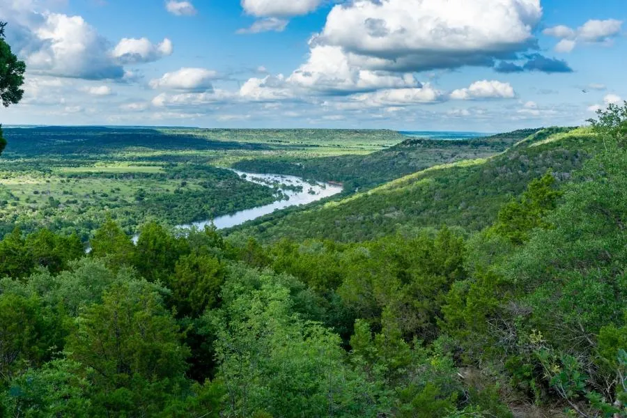 high point bluffs of School House Mountain overlooking the property and Brazos River. Numerous impressive vistas overlooking the vastness.