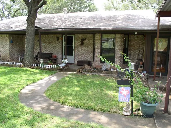 Reduced For Fast sale !! Beautiful landscaped 12+ acre parcel. Nicely wooded lot just North of town. Well maintained 2 br brick with 2 wood burning stoves. Potentially 13 X 15 sunroom could be used as 3rd bedroom but has no closet. Home boasts a updated HEAT PUMP system, is all electric, and has both co-op and water well. Property located on an all weather road Easy access to Shopping, Schools and Recreational facilities. 50% minerals may be negiotated. Close 30 minutes to Lake Possum Kingdom or about an hour from Ft. Worth