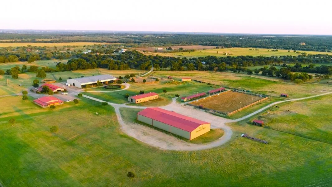 Lonesome Dove Hotel with 12 rooms, 4 bathrooms, and laundry room. Barn 1 - 18 stall comfort stall flooring in each stall with fans. Wash rack and tack room. Dining room (30 guests) with kitchen and bathroom (w/ shower). Barn 2 - 16 stall with co...