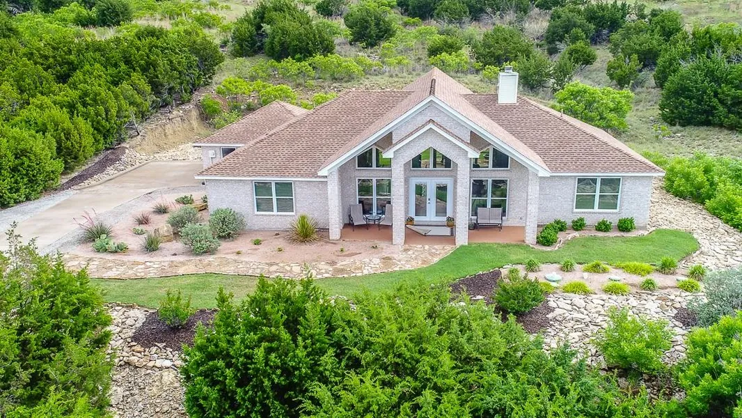This tranquil one story, modern home is perfect for retirement or just a peaceful getaway. The vaulted ceilings, tall windows, and open concept floor plan make this home feel more spacious than it already is. Maple cabinets, travertine tile and red oak wood flooring are just some of the many upscale finishing touches. Sitting hilltop on two acres, surrounded by trees, and infused with natural lighting, you feel as if you are in our own private world. In addition to the sights and sounds of nature all around in this gated development your POA dues of $600 are the lowest around the lake. You have full access to the gorgeous community clubhouse infinity pool, lake cabin, boat dock, and watercraft launch.