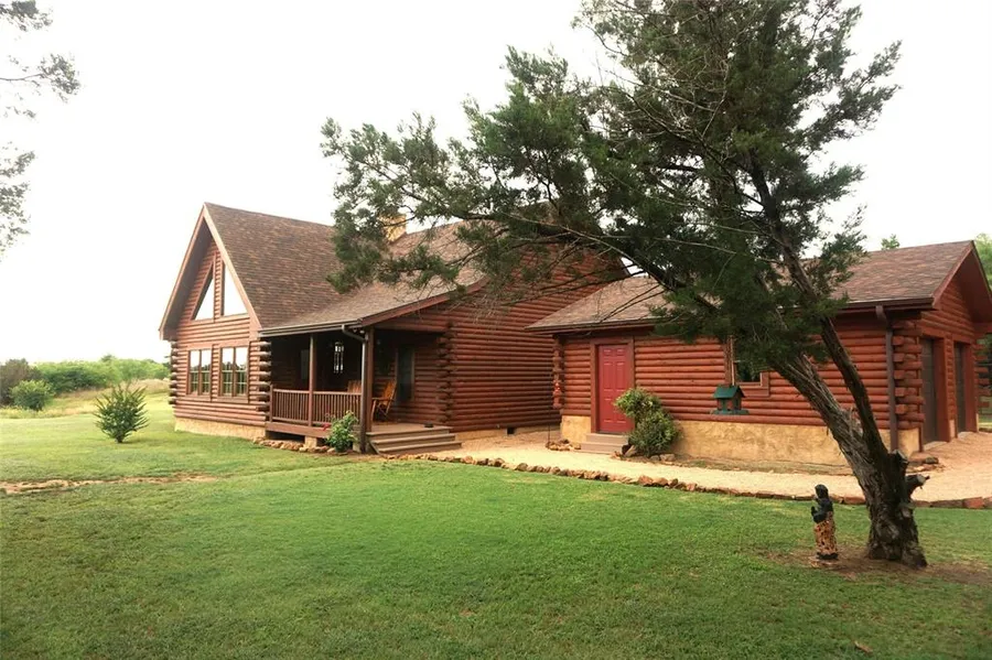 This tranquil, immaculate Southland log home sits on four acres with AMAZING CHARACTER including a winding dry creek bed running along front. Sights and sounds of nature abound all around including turkey, deer, and roadrunner. BRAND NEW ROOF and GUTTERS in June 2020. Many unique features including a steam shower in the Master, an outdoor Jacuzzi tub for stargazing and wood finish out throughout. In this gated development, you will also enjoy the community amenities including a gorgeous infinity clubhouse pool overlooking the lake, fitness center with new state of the art commercial grade equipment, community lake cabin and boat launch all for only $600 per year POA dues. A great place to escape it all!