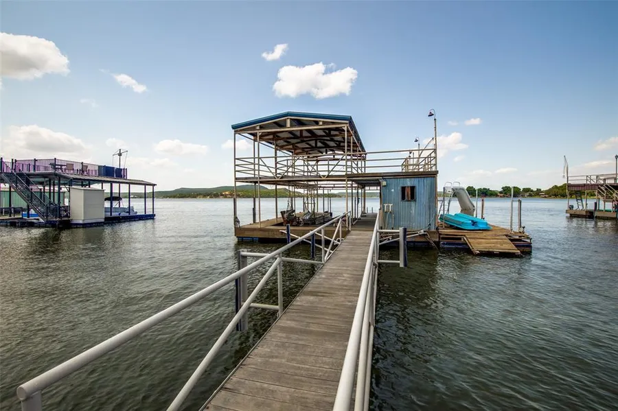 Gated entry to beautifully landscaped grounds. A canopy of oaks surround this cozy lakefront home. Main home features 2 bedrooms 2 baths as well as 2 living areas with walls of windows. New Cabana with loft, completed in 2020 sleeps 8 and offers a bright and airy feel, charming shiplap walls, stained wood flooring, full bath, coffee bar and private balcony space. This property offers abundant entertaining and outdoor living spaces. 55 graceful oak trees offer abundant shade. Tons of parking space. Privacy fenced. Huge boat dock w 2 slips and covered top deck. Fully functional rail system for boat storage and so much more. Buyer or buyers agent to verify square footages.