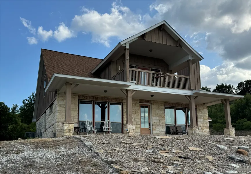 Enjoy PANORAMIC VIEWS of the LAKE and surrounding valleys from this Hilltop home located in the tranquil development of The Hills Above Possum Kingdom. This Open concept floorplan offers large windows for an abundance of natural light. The main floor boasts a spacious living area, well equipped kitchen and dining, and large utility room. The upper level gives way to 2 guest bedrooms, amply sized den or bonus room with office nook. The balcony is the perfect spot to take in the gorgeous views or the starry nights. The Hills community offers friendly faces and upscale amenities including ideally located infinity pool, fitness center, tranquil lake cabin, boat dock and watercraft launch. Come be of this great community.