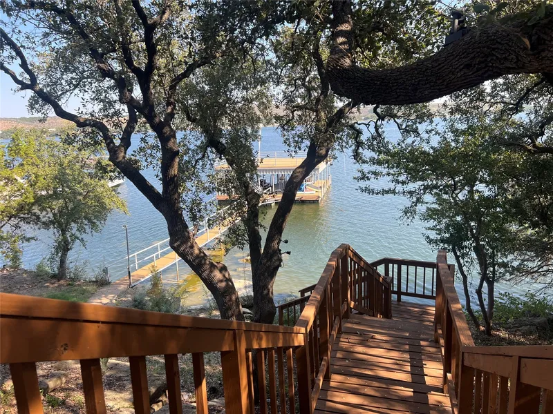 Highly sought after Peninsula location. This Sprawling 1 acre+ waterfront site displays gorgeous oak trees and attractive natural boulders. Enjoy some of the most spectacular views Possum Kingdom has to offer. This property also offers a newer two slip boat dock with a full upper deck for lounging or entertaining. 20+ foot of water depth. Newer fence with electric entry gate for privacy. New 24 x 30 metal shop with attached carport offers ample space for your lake toys. Existing cabin offers 4 bedrooms and 2 baths with a cozy fireplace in the living area. This property offers endless possibilities, your dream home can be built or you can personalize the original cabin.
