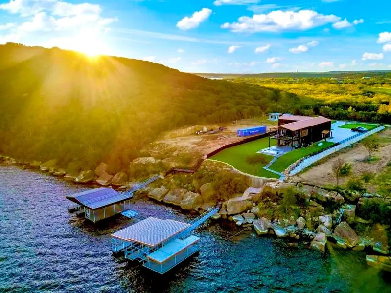 BREATHTAKING New Build, FURNISHED Custom 6830sqft BARNDO with 10 Bedrooms and 7.5 Baths designed for the Ultimate PK Lake, Family or Corporate Retreat, and Overnight Rental with the most SPECTACULAR, Elevated Panoramic LAKE VIEWS imaginable. This Dynamic Open Concept Design Lake Home, is the PERFECT place to Entertain a Massive group of Guests and Family, in the Oversized Living, Kitchen and Dining areas, and features a 2nd Level Game Room, complete with a custom TX Sized Bar. The 2 Patio doors there, give access to the 2nd Floor Covered & Cabled Deck, with Big Screen TV, Sound System, Outdoor Patio Seating with Gas Firepits, and Customized Exterior Lighting, that functions by App to change Color. The Deck boasts the most Impressive Lake View that overlooks the Custom POOL & SPA, and the Stunning PK Waterfront, and is the perfect place to Relax and Recharge, and watch the Big Tx Starry N...