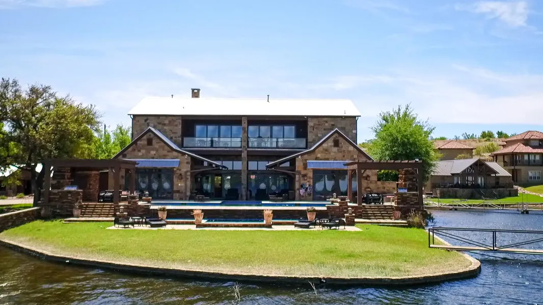 This luxurious, fully-furnished, waterfront home, built in 2008, offers a tranquil getaway on one of the most beloved lakes in Texas. The house features 2 master suites, custom details throughout and a priceless view of the cliffs of Possum Kingdom Lake. The gourmet kitchen is chef ready and includes a temperature-controlled wine room which holds 200+ bottles. Throughout the house, massive windows and a large second floor balcony, capture the properties breath-taking view. The attention to detail is clear when enjoying the custom designed pools and spa along with the 2 fully equipped outdoor kitchens. This home was designed and constructed for entertaining family and friends. The house also features a Media room which seats up to 8 people comfortably and a private gym with wet sauna and restroom. The 1,330 sq. ft. dock includes 2 boat slips, 3 jet ski slips with automatic covers and HydroHoist boat lifts. Seize this once-in-a-lifetime opportunity to own this magnificent home on the highly coveted Possum Kingdom Lake.