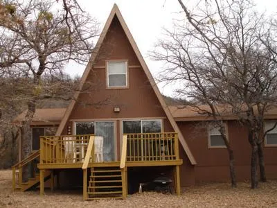 Enjoy quiet days at Lake Palo Pinto. Nice, Neat, and Clean lake cabin, with lots of windows and open flooring. Large wood deck. Covered boat dock with electric lift. Large loft area upstairs can be 3rd bedroom or game room. Master bath is plumbed for shower, so it would be easy to make into a full bath. Master has a walk in closet. Hardwood floors in living area. This is one of the few level water front lots on the lake. New HVAC unit in 2007.