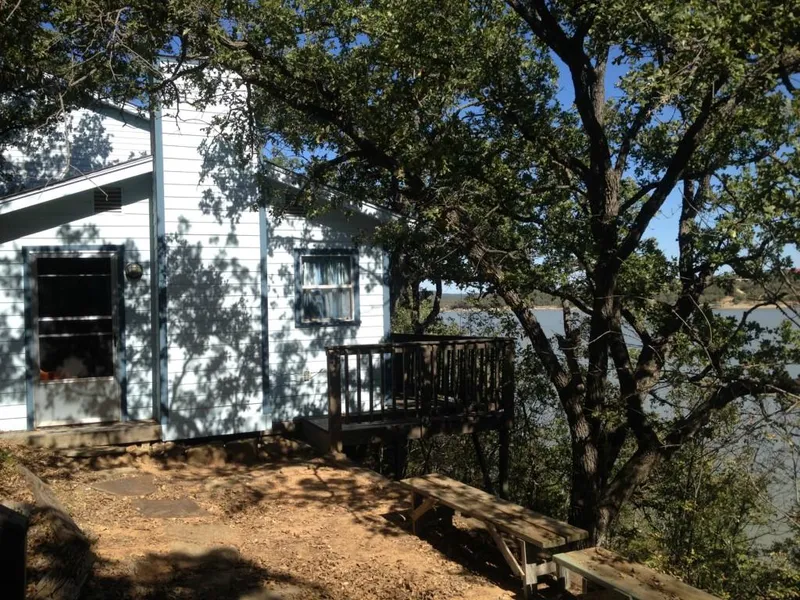 Charming home at Lake Palo Pinto. This lakeside home features 3 bdrms and 2 full baths. Living area 2 bdrms, bath on the first floor, with a small deck. Go downstairs to the kitchen, go down another level to a living or dining area. Just outside is a large deck with spectacular views of the lake. There is a detached large room, which could be the master bedroom or another living area. Large covered boat dock with 2 boat slips and lifts.