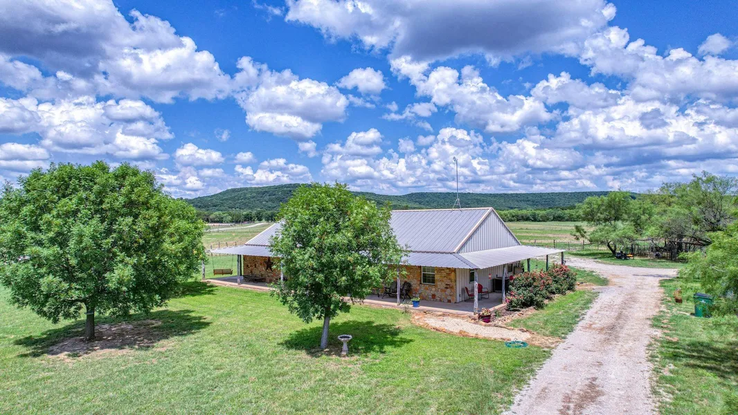 Enjoy the sun rising or setting while sitting on your wrap around porch surrounded by the Palo Pinto hills in Lone Camp, TX. This ranch home has 4 bedrooms and 2 bathrooms plus tons of rustic flare. The kitchen is open to the dining room and living room. This home is situated in a scenic setting on 10.522 acres and has a small shop with a large carport. It is rocked with a metal roof and is very energy efficient. The property is fenced and also has an area for dogs. Listed by Amy O'Bannon 940-445-0418