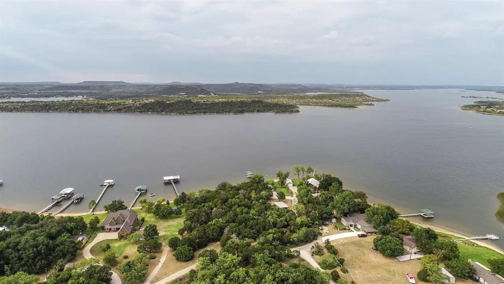 SPECTACULAR Possum Kingdom LAKE WATERFRONT PROPERTY on .75 acres with covered single-slip 30'x20-DOCK & 90' walkway PLUS a 10'x50' private concreted boat ramp which is also great for beach entry swimming! Additionally there is a cement retaining wall, water well, sprinkler system and huge grassy yard. Located in a premium location on the peninsula close to stores and restaurants, this property boasts of BRA conservation land next door for added seclusion and character. Upon entrance, a large undeveloped patch of land can be left as is for privacy or used to create your own dream lake property. VRBO & Airbnb allowed! This sweet lot has many unique features in addition to the 2128 sq ft home sitting on it.