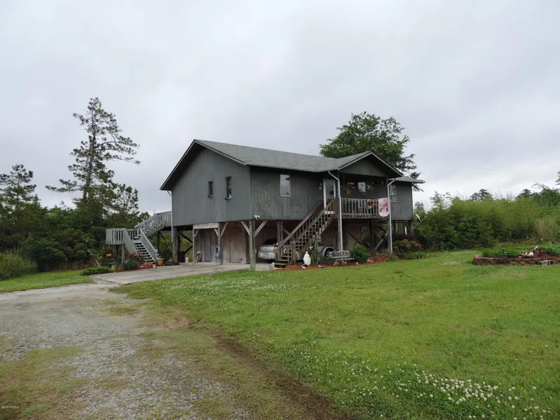 Looking for waterfront acreage with endless possibilities? HERE IT IS! Over 47 acres, 2 sewer taps in front of land, house is on septic in rear of land. Open areas throughout, overlooking marsh and waterfront. Sit out on your back deck and watch the shrimp boats go by! Fabulous 3 bed 2 bath cottage on stilts!