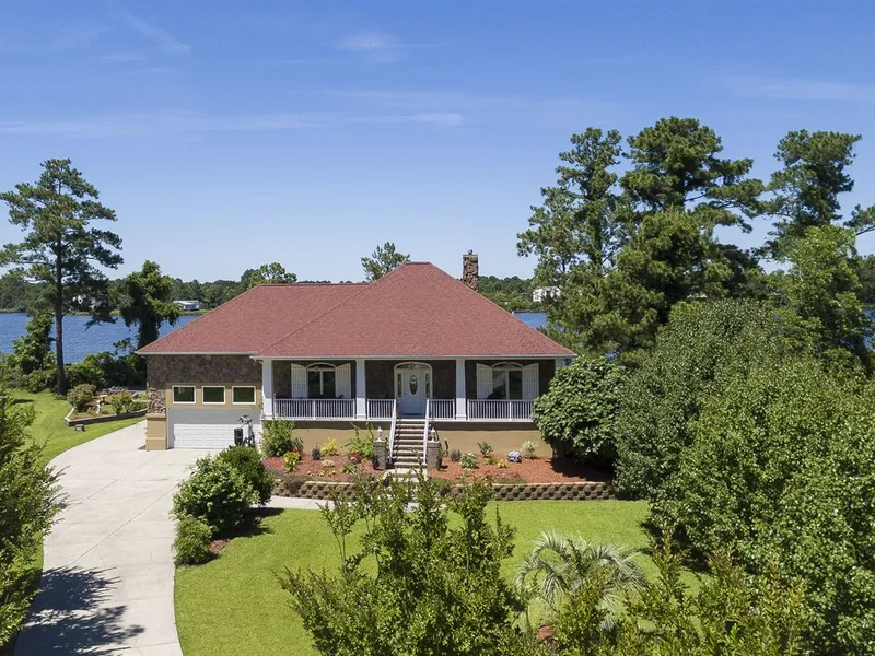 Situated on a cul-de-sac, the bulk-headed, 0.7 acre property has 200 feet of waterfront with 4 foot water depth at the end of the 140 ft. concrete dock. Country French style home was completely remodeled and updated in 2002 and offers a wide open interior design with column-defined living areas. One of the most breathtaking views in Oriental, this home overlooks the confluence of Smiths and Green Creek where they flow into the majestic Neuse River. A short hike or bike ride across the bridge into the village, this dreamy setting provides a feel of privacy with its park-like waterfront.