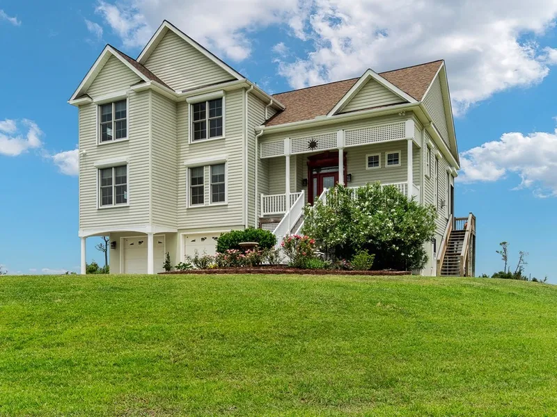Enjoy the coastal lifestyle in this beautifully designed 3-bedroom 3.5 bath home with panoramic views of the Bay River to the Pamlico Sound. This water lover's paradise has a private concrete backyard dock with boat lift and slip plus a double boat slip at the community dock. Peaceful six-acre setting offers privacy and a good elevation with miles wide views across the water. This exceptional home features glistening Brazilian cherry floors, a spacious great room with fireplace and a gracious dining area that flows seamlessly into a generously sized kitchen and keeping room. A wonderful floor plan creates an engaging openness. The master bedroom provides a sense of serenity with a separate seating area, private porch, generously sized walk-in closet and gorgeous bath with separate shower and tub. Distinctive features throughout this home include multiple porches, personal elevator, soari...