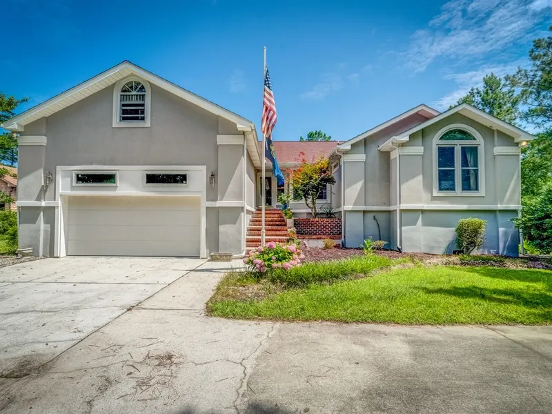 Nicely elevated home in a serene setting with private dock. Open floor plan with abundant light provides beautiful waterfront views throughout and a lovely design for everyday living. The cook lover's kitchen with granite counters, Jenn Air gas range, pantry with pull out shelves, Bosch dishwasher opens to generously sized living room and breakfast nook. Beautiful dining room is appointed with bar, wine rack, mini-fridge and bar sink for casual and formal entertaining. Split floor plan provides privacy for spacious master bedroom. Sliding glass doors across the waterside of this home access the deck and hot tub. Truly a home to enjoy a water lover's dream. Two outbuildings offer storage and space for hobbies. Attached double garage & paved circular drive.