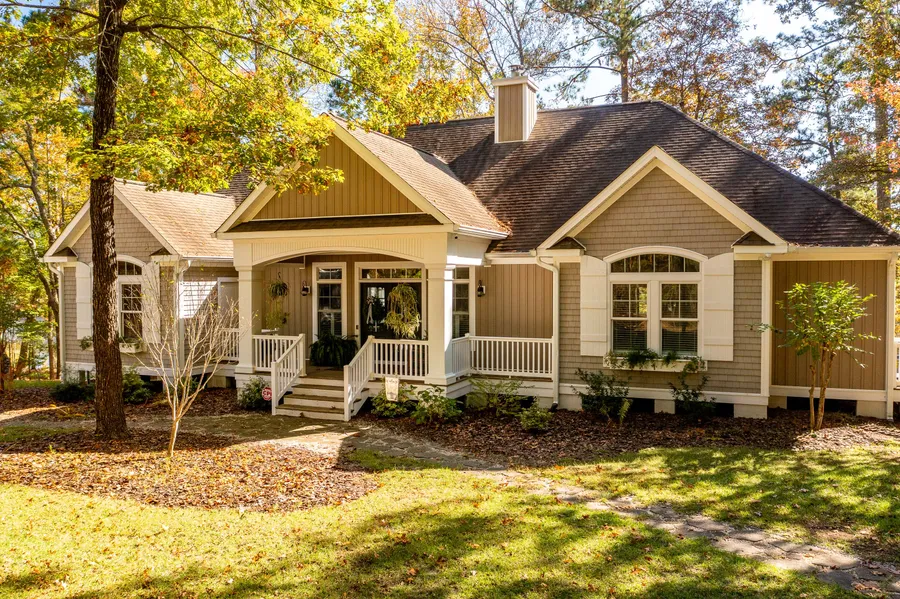High in the bluffs overlooking a tranquil lake, this spectacular 3 Br/3 Bath home is situated on a private wooded 1.2-acre property. No detail has been spared in this masterpiece. Features include Brazilian Cherry hardwood flooring , private balconies, wood-burning fireplace, generous screen porch with expansive views, chef's kitchen and two private owner's suites. Other desirable features include (2) Bosch 20 Seer Heat Pumps, a CPI security system with exterior cameras, water softener, a convection microwave, and 16 x 16 lakeside wood deck. Custom built by Pope Custom Homes, brilliant craftsmanship combines luxury finishes and an appealing open floor plan. This beautiful home comes fully furnished and is move in ready. Plenty of outdoor space and an abundance of wildlife offers the ideal location to commune with nature. Peaceful, quiet setting on Indian Lake with the nearby Neuse River ...