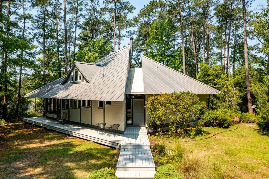Your dream of coastal Carolina living is here! This custom contemporary home overlooks the confluence of Brites & Orchard Creeks. Fish or crab off your private concrete dock, kayak along the creek, or sail down the Neuse River and Intracoastal Waterway. Nestled among tall pines on 2.1 acres, this tranquil retreat is conveniently close to the charming Village of Oriental, the sailing capital of North Carolina. The meticulously built & lovingly maintained 3BR/3BA main residence features an open living & dining room with vaulted ceilings, skylights, a panoramic window wall, hardwood floors and wood-burning fireplace. Take in the peaceful surroundings from the shady screened porch & wraparound deck. The modern kitchen has stainless appliances & granite counters. A first-floor primary bedroom includes an en-suite bath & walk-in closet. An additional bedroom or office, guest bath & laundry are...
