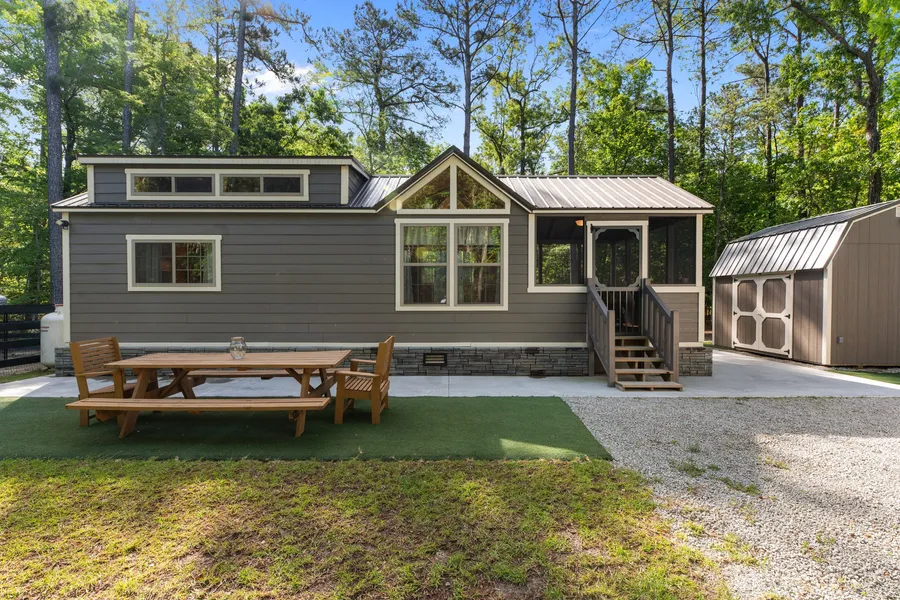 This Stunning Amish built, custom Tiny Home is a must see!! Nestled in a private setting on 1.3 acres in The Bluffs community of Arapahoe. No HOA and low annual taxes. Set on a concrete Foundation (but can be moved) surrounded by custom pavers. Includes an outside shed which houses the washer and dryer, water softener and filter. Minutes away from Minnesott Beach Ferry which provides you with a short drive to Morehead City and Beaufort (great restaurants and beaches). There is a local Marina for your boat and Minnesott Beach Golf and Country Club with pool for your convenience. Owner has created this setting of Land, Tiny Home, Shed, Driveway, Fenced in Backyard with entertainment area, paying attention to every detail. All Furnishings are included in the Sale. Enjoy the peace and serenity of this private1.3 acre parcel while you build your dream home (on the same lot) and have your very own Airbnb when complete. 50 Year Metal Roof, Well and Septic for 3 bedroom home in place. All Utilities underground, 400 Amp electrical service on site with separate RV plug. Rinnai instant hot water heater and all appliances with custom Amish built furnishings included in the Sale! There is a Charter School within a short drive (15 minutes) Kindergarten - 12th Grade. Set your Appointment to see this Gem today!!