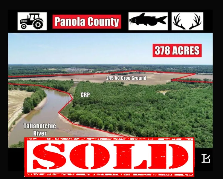 SOLD! 378 ACRES in Panola County- 245 AC of Crop Ground & 143 AC of Woods - Located on the Tallahatchie River just north of Batesville & west of Hwy 51, this property offers a great combination of income and recreation! The property has nearly a mile of frontage on Hwy 51, and there are 4 parcels totaling 378 acres. The crop ground is currently leased for the season at $18,000 annually, and there are 30 acres in CRP with $2,700 annual payment through 2032. The remaining woods were cut years ago and replanted in hardwoods. There's an irrigation system on part of the acreage that's owned by the farmer. You'll see plenty of big deer on the property & turkeys passing through, and of course, it's a rare opportunity to have your own riverfront fishing spot! Be sure to see the photos! The property was recently surveyed at 380 acres, but the home & approximately 2 acres will be surveyed out. Ann...