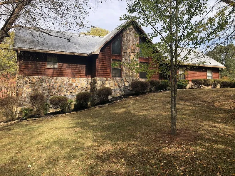 Incredible custom home offering a plethora of amenities less than 5 minutes from Enid Lake. Main level has 2 master suites. Western cedar tongue & groove vaulted ceiling w/exposed beams in kitchen & den. Beautiful custom oak cabinets in kitchen. Sunroom opens to large deck. Also, a quaint gazebo w/cedar shake roof. Walk out basement can be separate guest quarters w/its own covered outdoor space, large bedroom suite, PLUS extra area for bunk beds and/or game room, AND storm shelter. Also, a guest house/efficiency apt. w/2 car carport, boat shed & workshop, RV hook up w/ elec. & water.