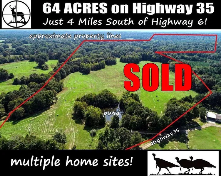 Loaded with deer and wild turkeys, this is the perfect spot to build your private estate with plenty of room for additional homesites! Located just 4 miles south of Highway 6 on Hwy 35 South, this property has gentle rolling hills with open ground and a nice mix of timber. There's a pretty pond at the property entrance and another small one near the back, which makes a great watering hole for wildlife or cattle! With a good bit of fencing already in place, some of the acreage could easily be used for horses or cattle, too. Adjoining acreage has just been sold with comparable pricing.