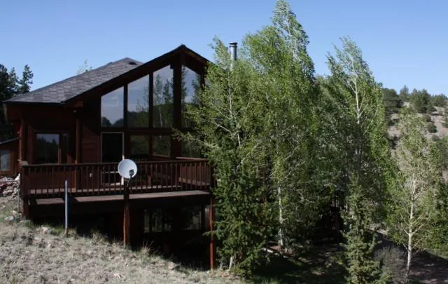 Live the Colorado dream in this serene mountain setting. Gorgeous 35 acres with intermittent stream, pond, snow capped view, nice mix of sloping meadows, mature pines and magical aspen groves. The bright open 3 bedroom 2 bath home exhibits an artistic quality featuring soaring wood beamed ceilings, floor to ceiling windows, new carpet, exterior decks to enjoy the outside views and the convenience of an attached garage. The upper main level great room is accessed through an entry level sun room and includes a living room dining room combination. An efficient galley kitchen includes boat style access stairs to the upper story Crows Nest perfect for your private hideout. The homes lower level bedroom offers independence with a large open area, bar style sink, closets and storage, private bath, office/sitting area, and access to the outside. Could also serve as a fun recreation area. The outdoor recreational opportunities are endless. No covenants. The adjoining 46+ acres can be included creating an 81+ acre retreat.