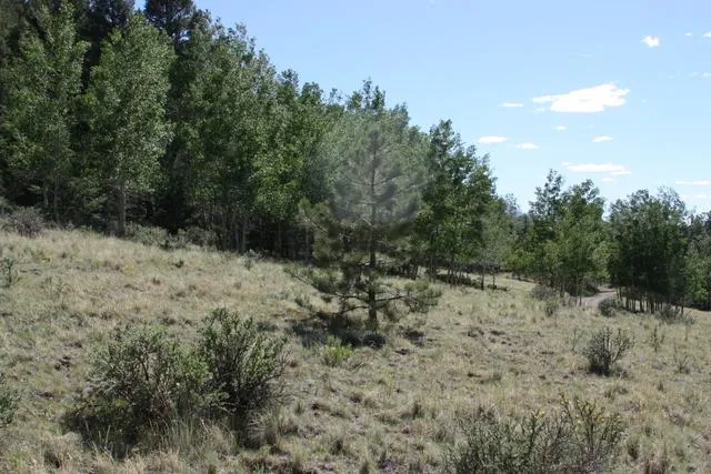 This rugged timbered property has a driveway that leads to a rustic shed perched atop an open knoll. From here there is an awesome southern view of a lush valley below and the Sangre de Christo mountains in the distance. To the west from the lower portion of the land is a beautiful view of a pond, while 640 protected acres of a large ranch creates a private buffer to the East. A wonderful sense of seclusion is the result. Power and phone run along the road or take advantage of the sunny southern knoll and go off grid.
