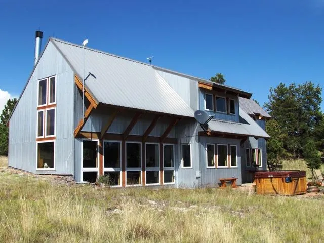 Architect-designed, hand-crafted home with panoramic 180 degree views of the Sangre de Cristos. This house is in perfect condition with phenomenal finishing touches. The tongue & groove vaulted ceilings add to the open feeling. Energy efficiency is a key point here with passive solar, a no maintenance exterior and much, much more. Being nestled into the hillside makes this a private and quiet location to get away from it all. The cabin is fire resistant with metal roofing and siding all around. Views, trees, meadows, and rock formations will delight you as you explore your property for years to come.