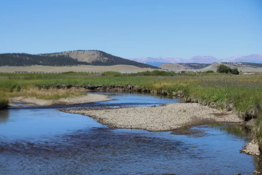 Stunning river front property with amazing views of the 14,000-foot snowcapped views of the Continental Divide from the many building sites overlooking the river and above the FEMA Flood Plain. Highway and county road for easy access. No covenants, Home Owners Association, or restrictions. Located contigous with a new 800 acre hunting and fishing guest ranch. The small town of Hartsel is heading in the direction of a destination resort with the development of a hot springs that in the 1920' when the Colorado MIdland Railroad stopped there for passengers to bathe and stayy at the local hotel.