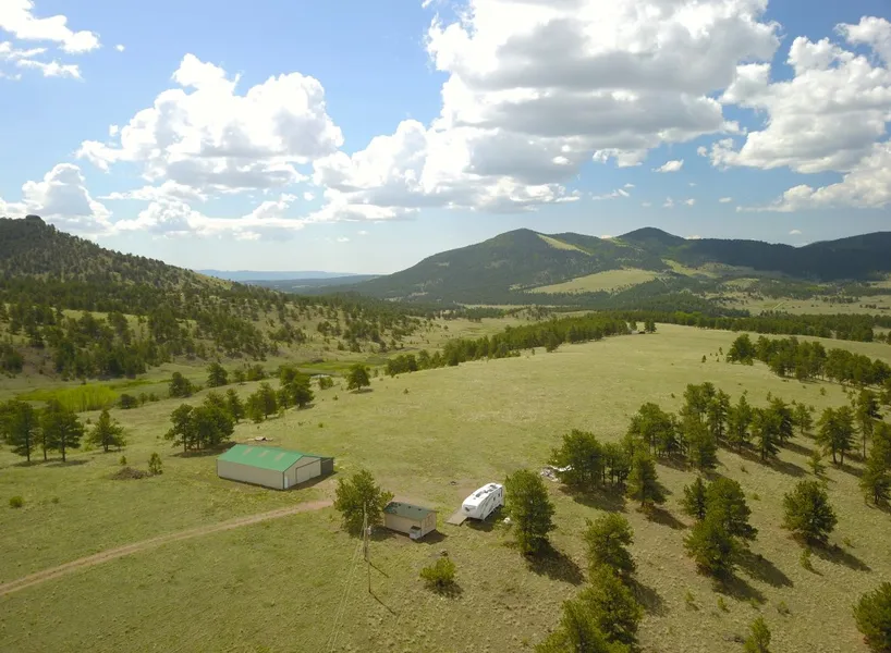 This 35-acre property is located in the foothills near Guffey, Colorado, and offers expansive views of surrounding meadows and mountains. The land features a mix of native grassland and mature pine trees, providing both open space and privacy. A gated entry and long driveway lead to a private area where the main improvements are situated and the flat top meadow has premium building sites for a future home or cabin.A domestic well is already in place (5 GPM per State records) and provides a reliable source of water for residential or agricultural use. Key improvements include a 30’ x 50’ metal barn building with a 10’ x 30’ loafing area or storage space, wired with 220V power, making it suitable for equestrian use, equipment storage, or other recreational purposes. The other structure is a 12’ x 20’ shed with an electrical panel, ideal for additional storage or conversion into a workshop or studio. There is also a 37 foot 5th Wheel Camper included that is connected to a 250-gallon exterior propane tank and a 110-amp RV hookup, offering a functional and comfortable living or travel setup. This all-weather RV features an extra insulation package, solar panels with monitoring/control unit, and both 30-amp and 50-amp service. This RV has been well taken care of and loved and it shows. The inside boasts three slide-outs, quality oak cabinetry, a large kitchen with double sink, convection oven, three-burner propane stove, sofa/daybed with storage, king size bed, entertainment center with a surround sound system, plus much more. This is a unique opportunity to own a large, scenic parcel in a desirable part of Colorado with much of the essential infrastructure already in place. Don't wait another minute, start enjoying the Colorado mountains with family and friends.Reach out to the listing agent directly to get the full description of improvements and inclusions and to schedule your showing today!
