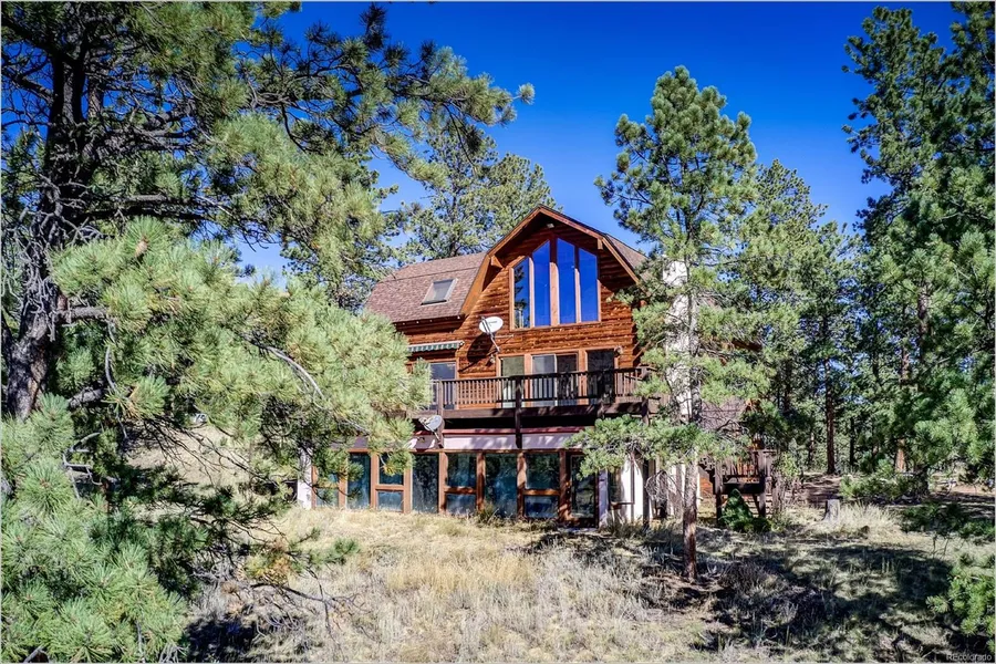 This beautiful log home sits on 2.5 acres providing everything expected of a mountain retreat easily accessible to Denver and nearby recreation. New roof, new interior paint, new deck stain. Upon entering you'll immediately notice the 10 foot ceilings, family room and 2 additional large rooms that could easily become 4th and 5th bedrooms. The garden level also has a bath. The main floor boasts a large kitchen and dining area, living room, main floor master, bath and main floor laundry center / mud room (with shower). Step outside and breathe the fresh mountain air on your 1000 sf wrap around deck. The 3rd floor has two bedrooms with balcony, a full bath and an incredible 420+ sf loft. Each floor has it's own heat zone. Enjoy the privacy, beauty and abundant wildlife surrounding this spacious log home.